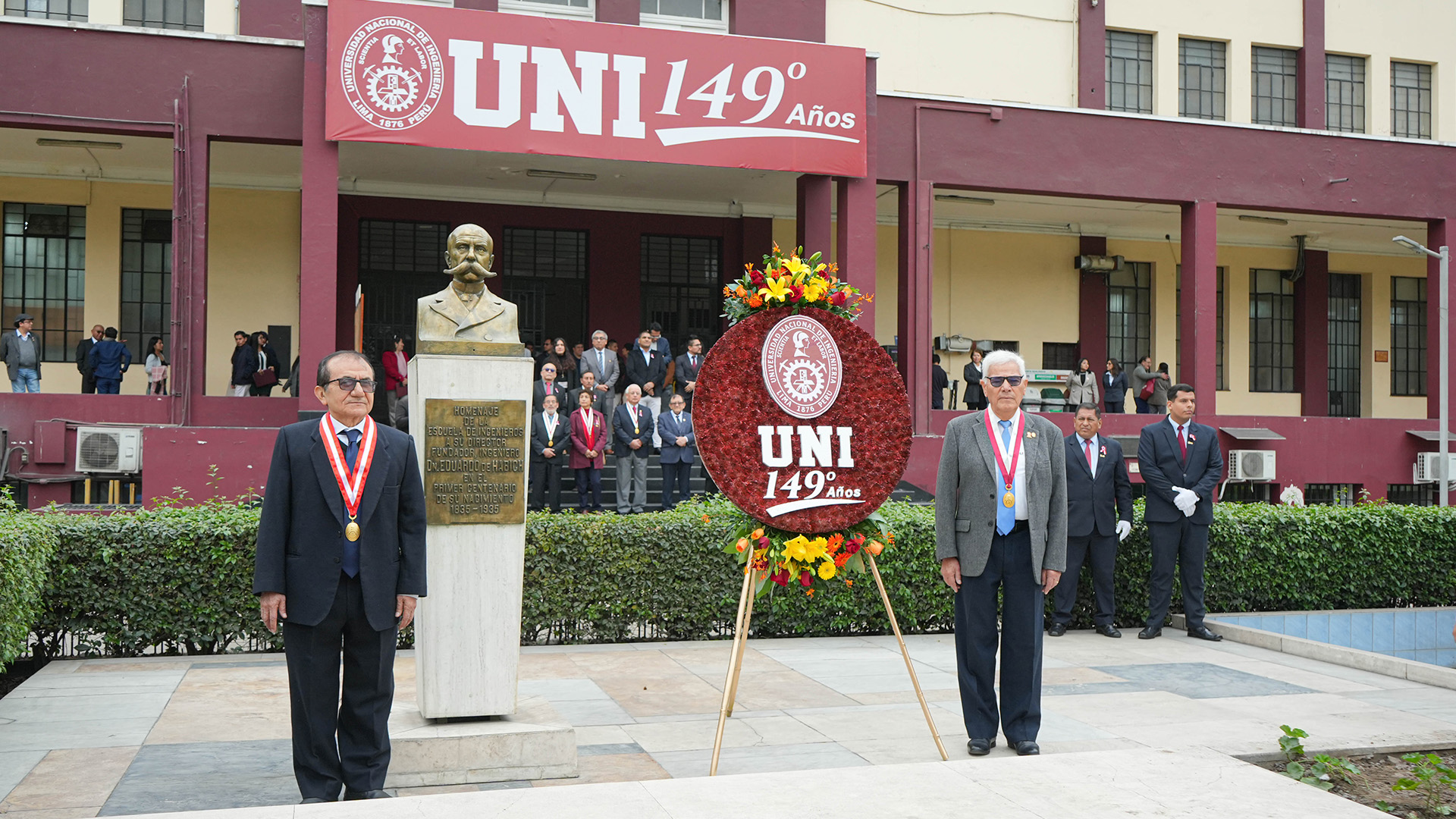 Durante la significativa ceremonia, llevada a cabo en la Plazuela Manuel Pardo y Lavalle, se produjo el izamiento del Pabellón Nacional y de la Bandera de la UNI, la entonación del Himno Nacional por parte del Coro UNI, y la colocación de una ofrenda floral al busto del expresidente Manuel Pardo y Lavalle.