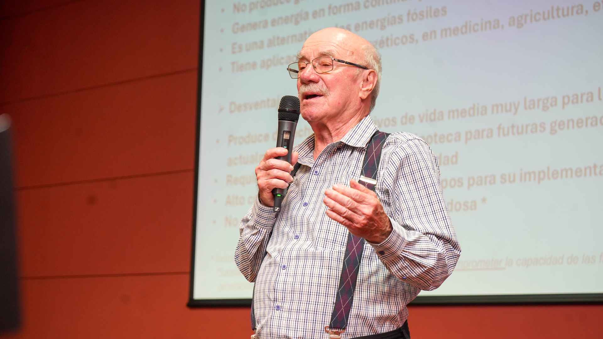 El Dr. Manfred Horn Mutshchler, con la distinción honorífica «Antorcha de Habich», realizó una conferencia en la Facultad de Ciencias sobre el eventual uso de energía solar o nuclear ante el problema energético en el país.