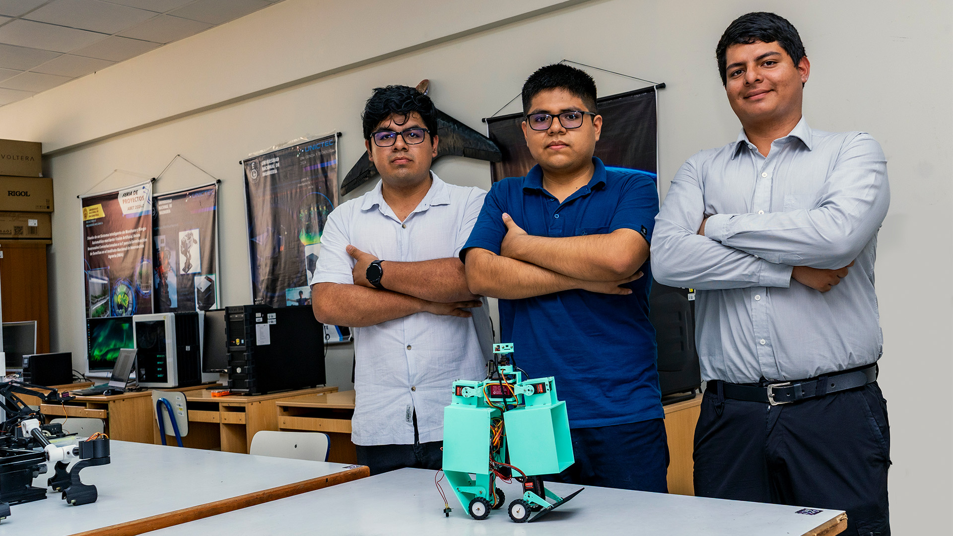 Se trata de los estudiantes Juan Salvador Palacios Bett, Alejandro Jose Agapito Quiñones, José Luis Segundo Manayay y Miguel Angel Chumacero Bustamante, quienes conformaron el equipo Supertronics.