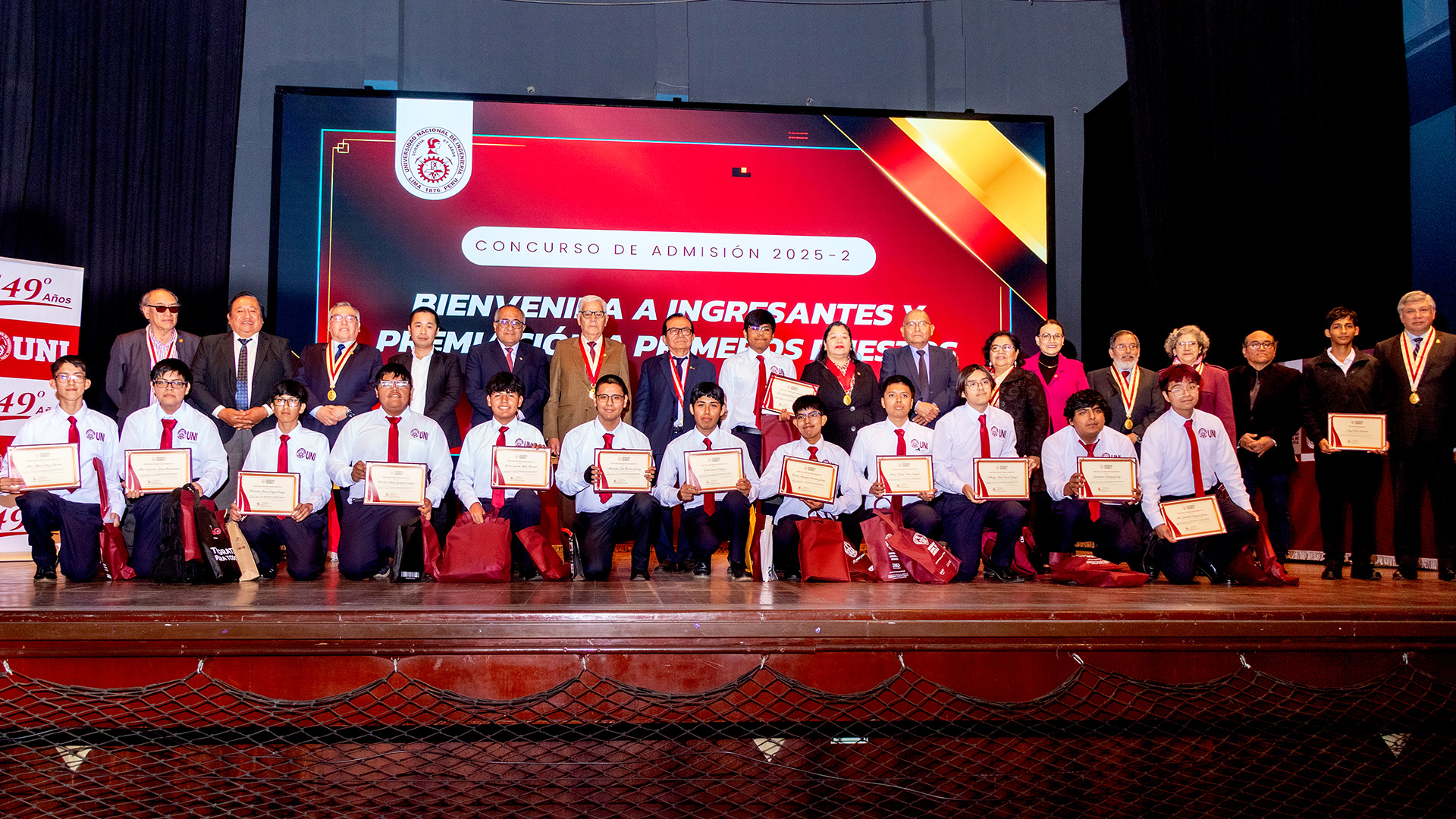 Excelencia académica. La Universidad Nacional de Ingeniería (UNI) realizó una significativa ceremonia de bienvenida a los cachimbos y a 14 jóvenes que alcanzaron los primeros puestos en el proceso de Admisión 2025-2. La premiación estuvo presidida por el rector de la UNI, Dr. Arturo Talledo Coronado.