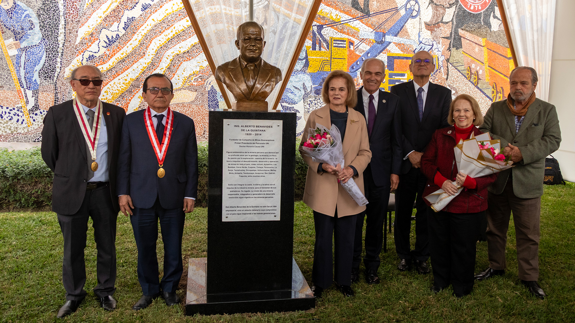 Figura emblemática de la minería peruana. La Universidad Nacional de Ingeniería (UNI) develó el 2 de septiembre el busto de bronce del Ing. Alberto Benavides de la Quintana (1920-2014), fundador de la Compañía Buenaventura, primer presidente del Patronato UNI y Doctor Honoris Causa de esta casa de estudios.